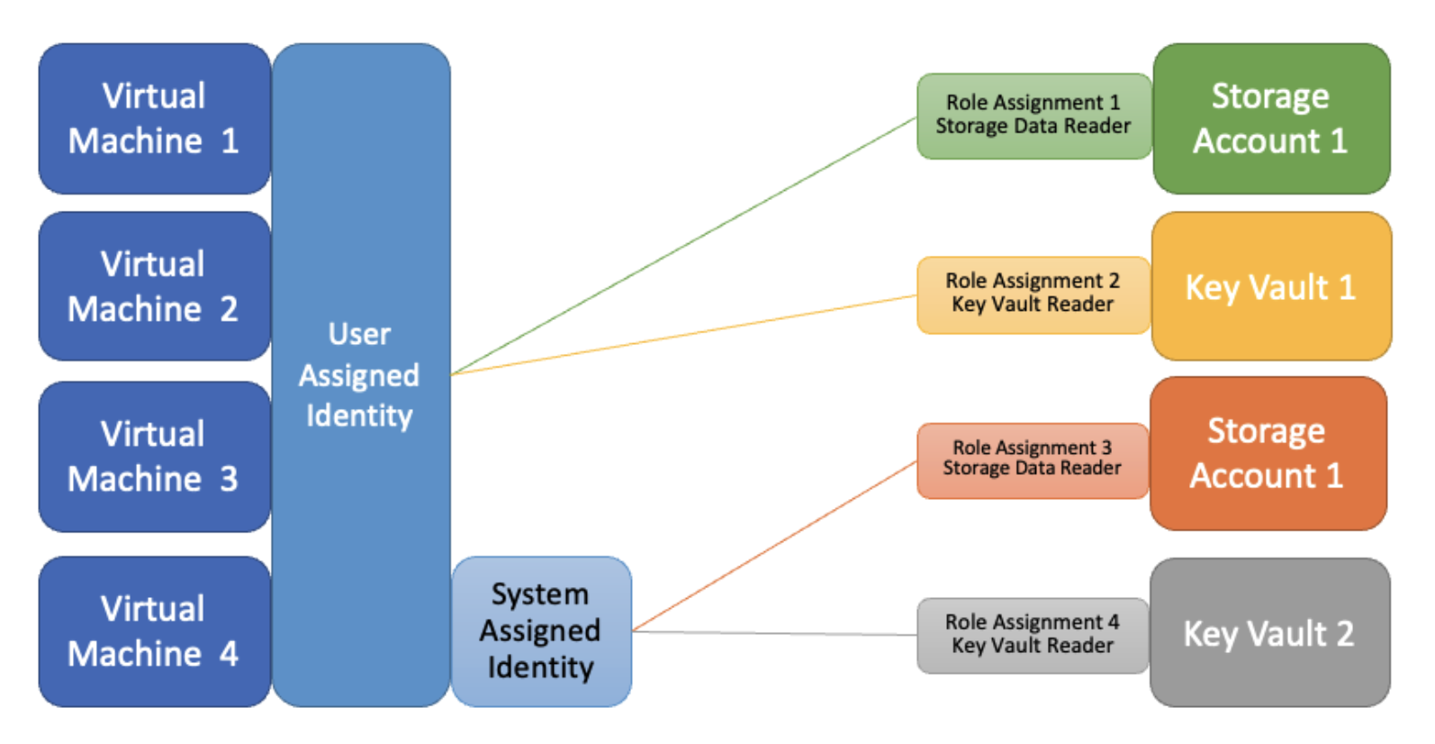 - User-Assigned Managed Identity: This identity is created as a standalone Azure resource and can be associated with as many Azure resources as needed.