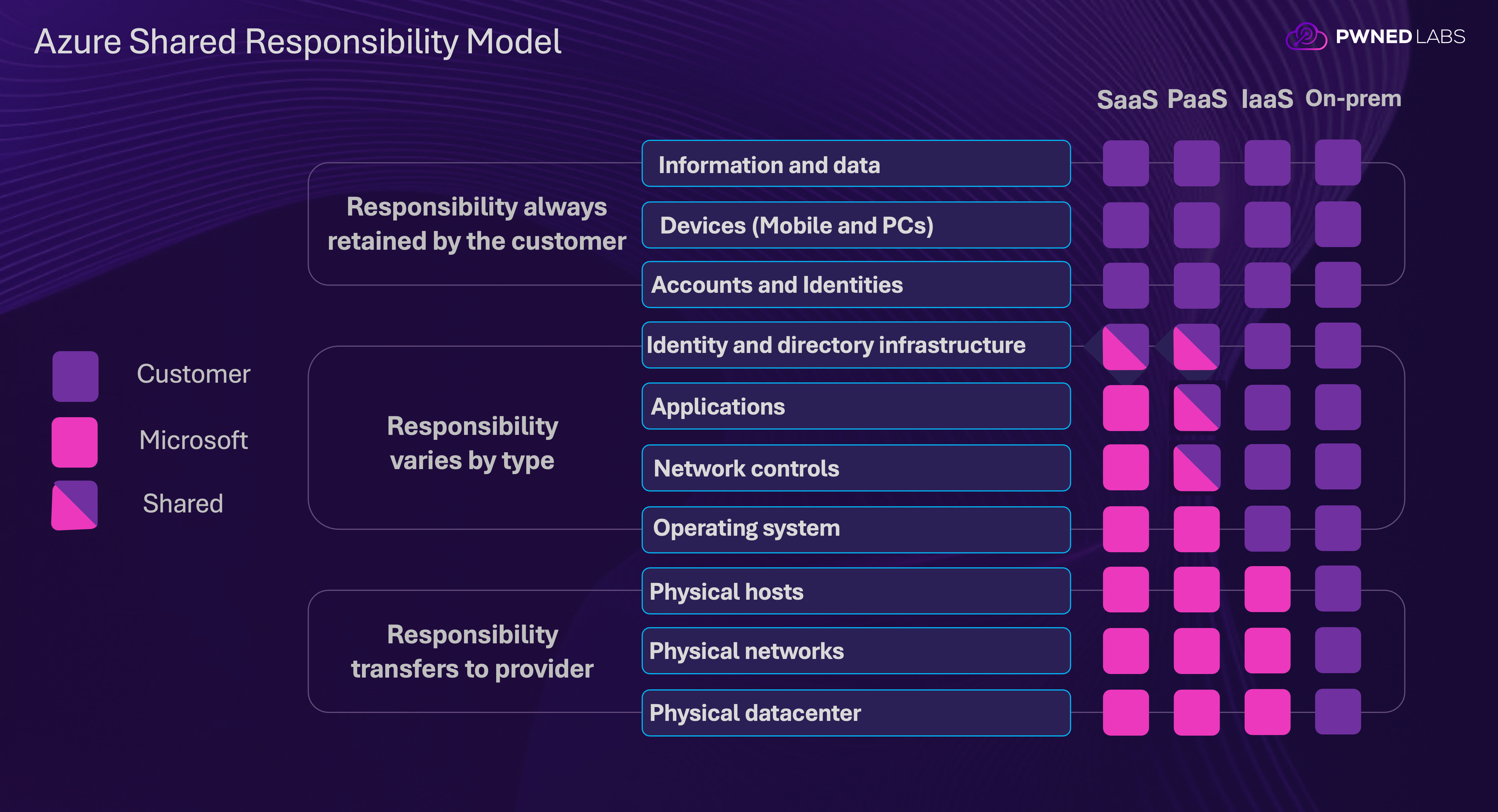 Azure Shared Responsibility Model, adapted from: https://learn.microsoft.com/en-us/azure/security/fundamentals/shared-responsibility