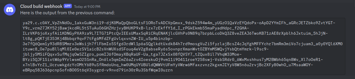After checking our webhook, we see that we've extracted the service account email!