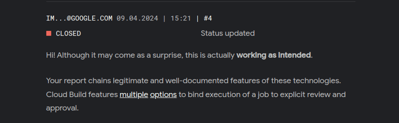 2. Working-As-Intended: RCE TO IAM Privilege Escalation in GCP Cloud Build