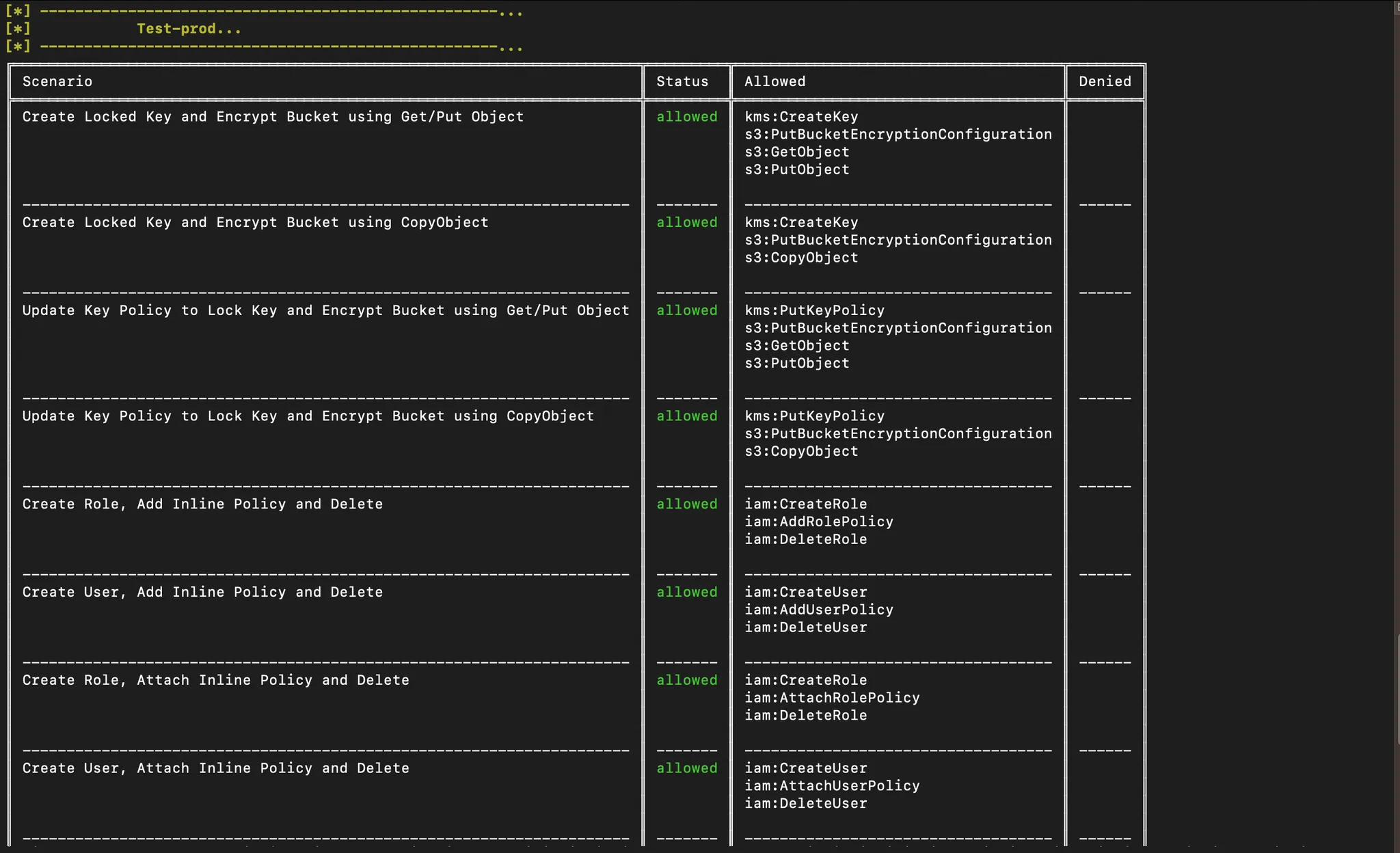 RansomWhen identified what seems to be excessive permissions for a test IAM User ( Test-prod ) within the compromised account and presented various possible attack scenarios that an attacker could leverage to execute a ransomware attack.