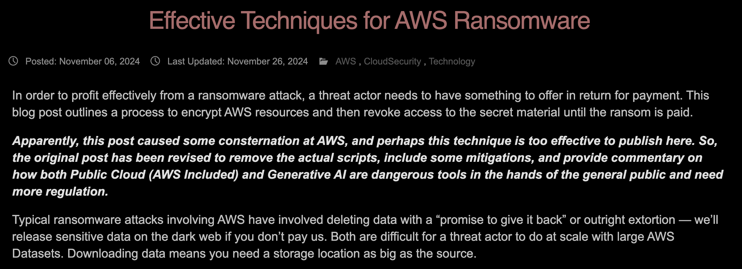 Figure 1.1: Screenshot from https://www.chrisfarris.com/post/effective-aws-ransomware/